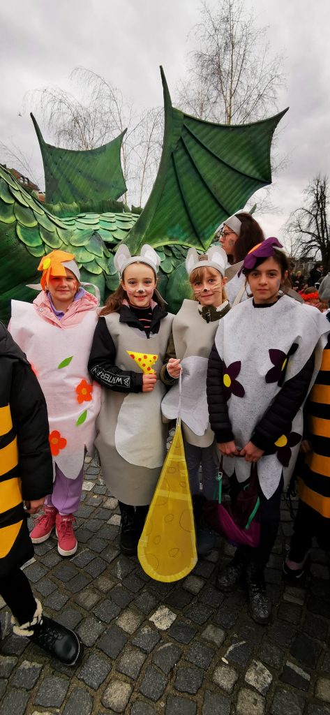 Tudi letos smo se z učenci udeležili tradicionalnega Zmajevega karnevala v Ljubljani, ki je potekal v soboto, 10. 2. 2024. Skupaj smo, z učenci drugih osnovnih šol in vrtcev, navduševali vesele gledalce, ki so nas spremljali, ko se je povorka vila od Brega do Kongresnega trga. Tam smo zaplesali in se nato posladkali s slastnimi pustnimi krofi.