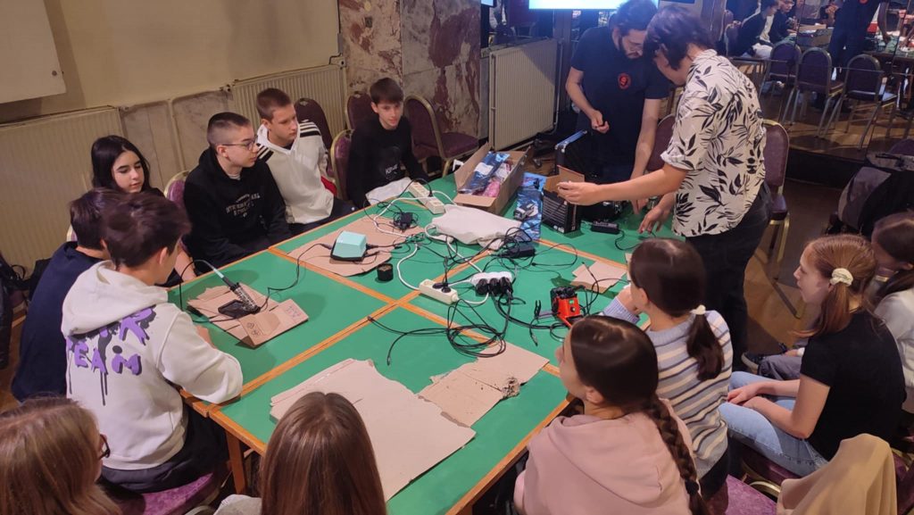 “Zjutraj smo se nadarjeni učenci zbrali in šli v Pionirski dom. Festival se imenuje Hokus pokus. Najprej smo spajkali. Naredili smo instrument. Bilo je zelo zabavno. Potem pa smo šli še na eno delavnico, kjer so nam razlagali o navdihih iz narave, ki so jih znanstveniki prenesli v svoje izume. Potem smo jih lahko še sami preizkusili. Najbolj zanimiv je bil lotusov list. Preverite, kaj se zgodi s kapljico vode, če pade na lotusov cvet. Na koncu smo gledali še predstavitev, ki je bila zelo smešna in zanimiva. Bilo je zelo poučno. Zelo priporočava.” Ema in Kiara, 7.b