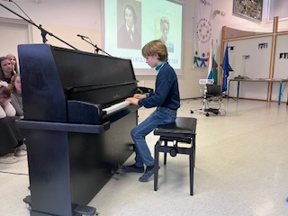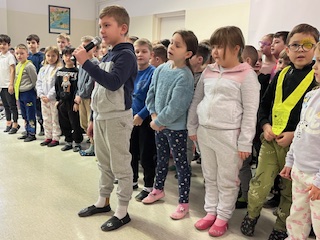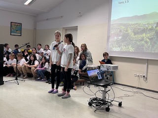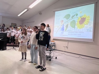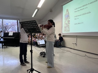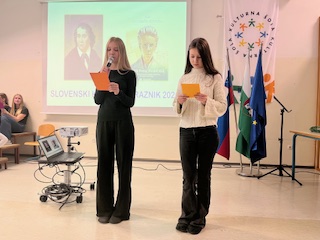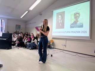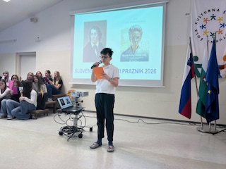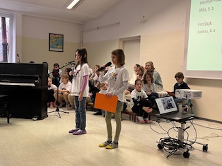 Učenci od 6. do 9. razreda pa so prisluhnili interpretacijam Kosovelovih, Prešernovih in Gregorčičevih pesmi ter spoznali Kosovela kot pesnika, ki je bil pred svojim časom in z mnogo vizijami. Z ubranim prepevanjem so nas navdušile osmošolke in devetošolke, za glasbeni del pa sta poskrbela še Gal in Jakob.
